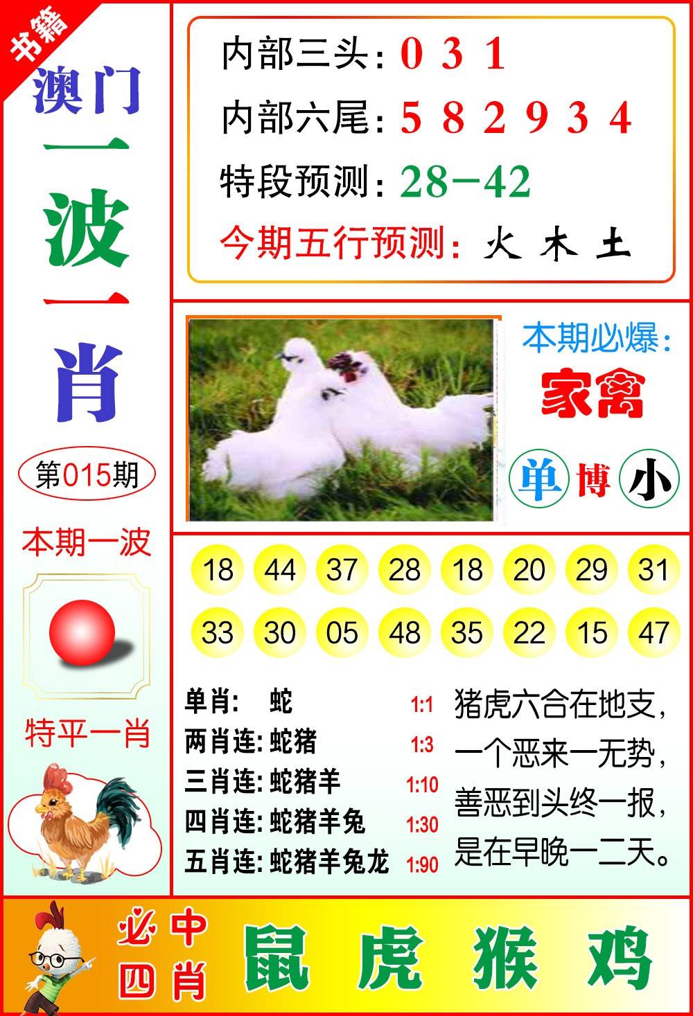 | 015期单【羊龙牛鸡猴】 双【马狗兔虎蛇】开?00 |